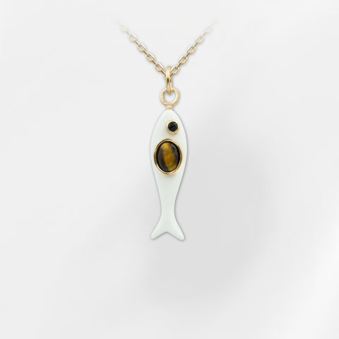 Fish pendant inspired by the colors of Greece and the Mediterranean. Designed to be worn alone or layered. A limited edition summer piece.