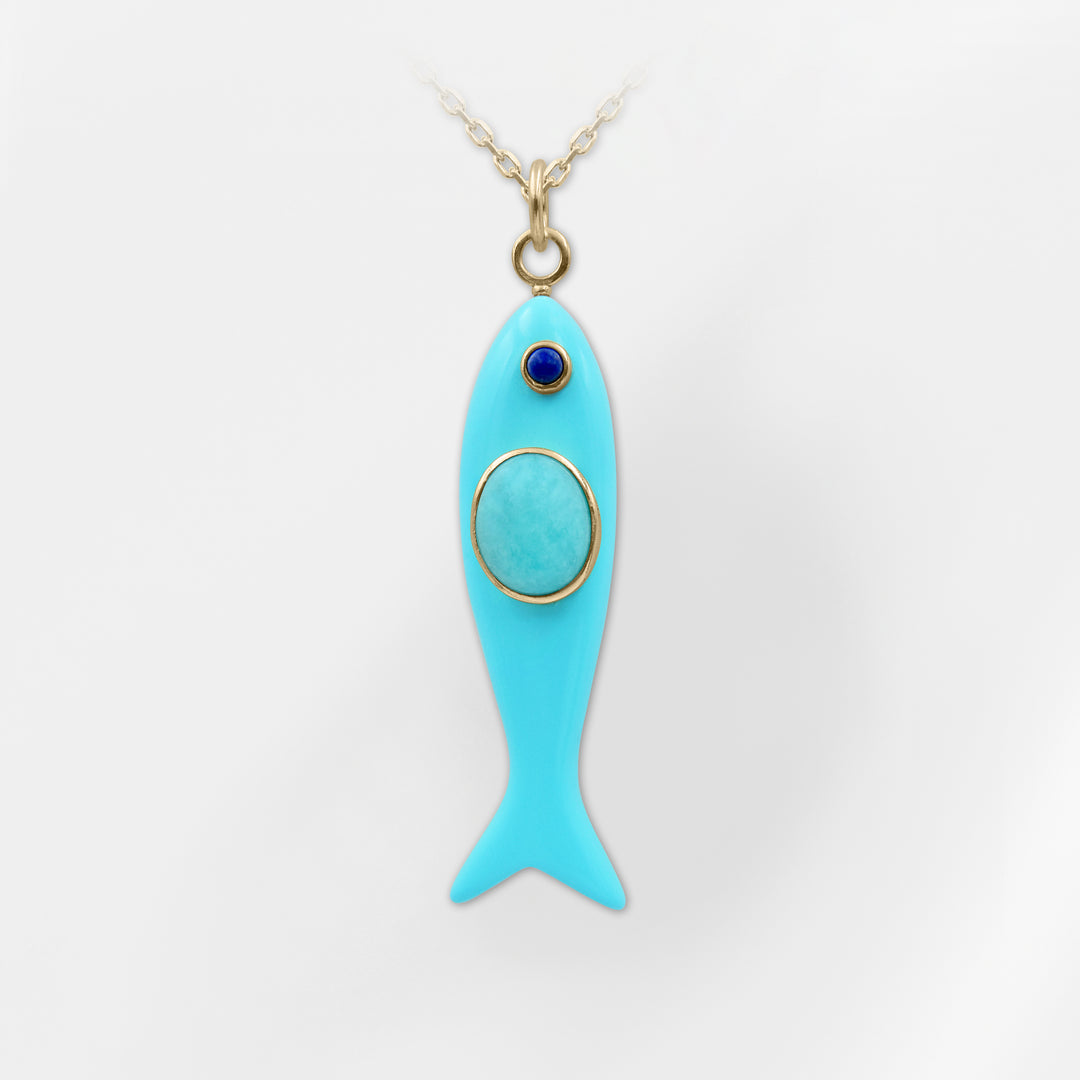 Nerida – Turquoise Fish Pendant with Amazonite and Malachite