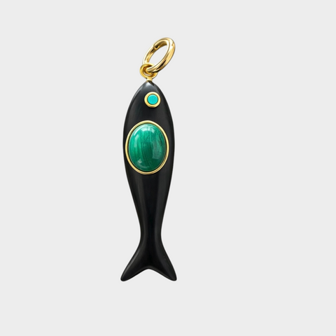 Statement fish pendant with clean lines and bold presence. Comes with an adjustable magnetic choker cord.